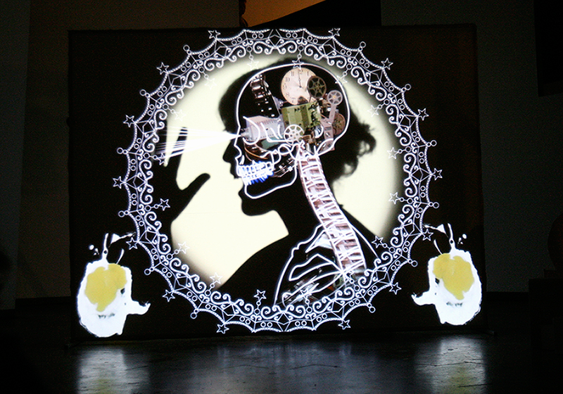 Miwa Matreyek’s live performances, which embed her body as a graphic silhouette choreographed alongside her animated projections, establish a palpable and intimate relationship between the animator, the animated composition projected onto a variety of screen surfaces, and the audience.