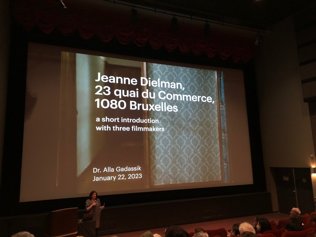 On January 22nd (2023) I participated in opening a new screening series at Vancity Theatre dedicated to the latest Sight & Sound poll of the “Greatest Movies of All Time.” The series programmer invited me to introduce Chantal Akerman’s 1975 film Jeanne Dielman, 23 quai du Commerce, 1080 Bruxelles, which emerged as the top film in the latest iteration of the poll. This result delighted many cinephiles, while eliciting condescending dismissal from some. As a scholar and curator who remains dubious about the merits of the Sight & Sound poll, I took the opportunity to frame this remarkable film for audiences and celebrate its challenge to the established film canon.